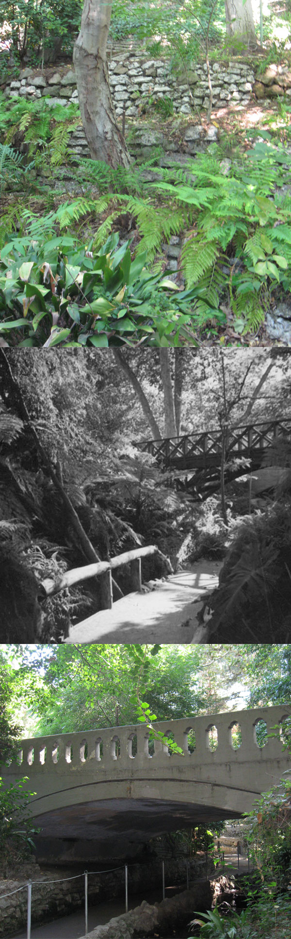 In the late 1980s, concerned neighbors rallied the City to undertake a short-lived rehabilitation of a portion of Fern Dell. Repairs were made, plant stock renewed and, in 1989, metal bridges were installed, replacing the original picturesque but rotting spans. Fortunately, enough remnants of these original character-defining features survive so they can be recreated by modern craftsmen. Huntington Gardens’ recent restoration of the elaborate faux bois pergolas in its rose and Japanese gardens shows the way. Stabilizing and rejuvenating Fern Dell’s unique hardscape is an essential step in the journey towards the ultimate revitalization of Fern Dell.