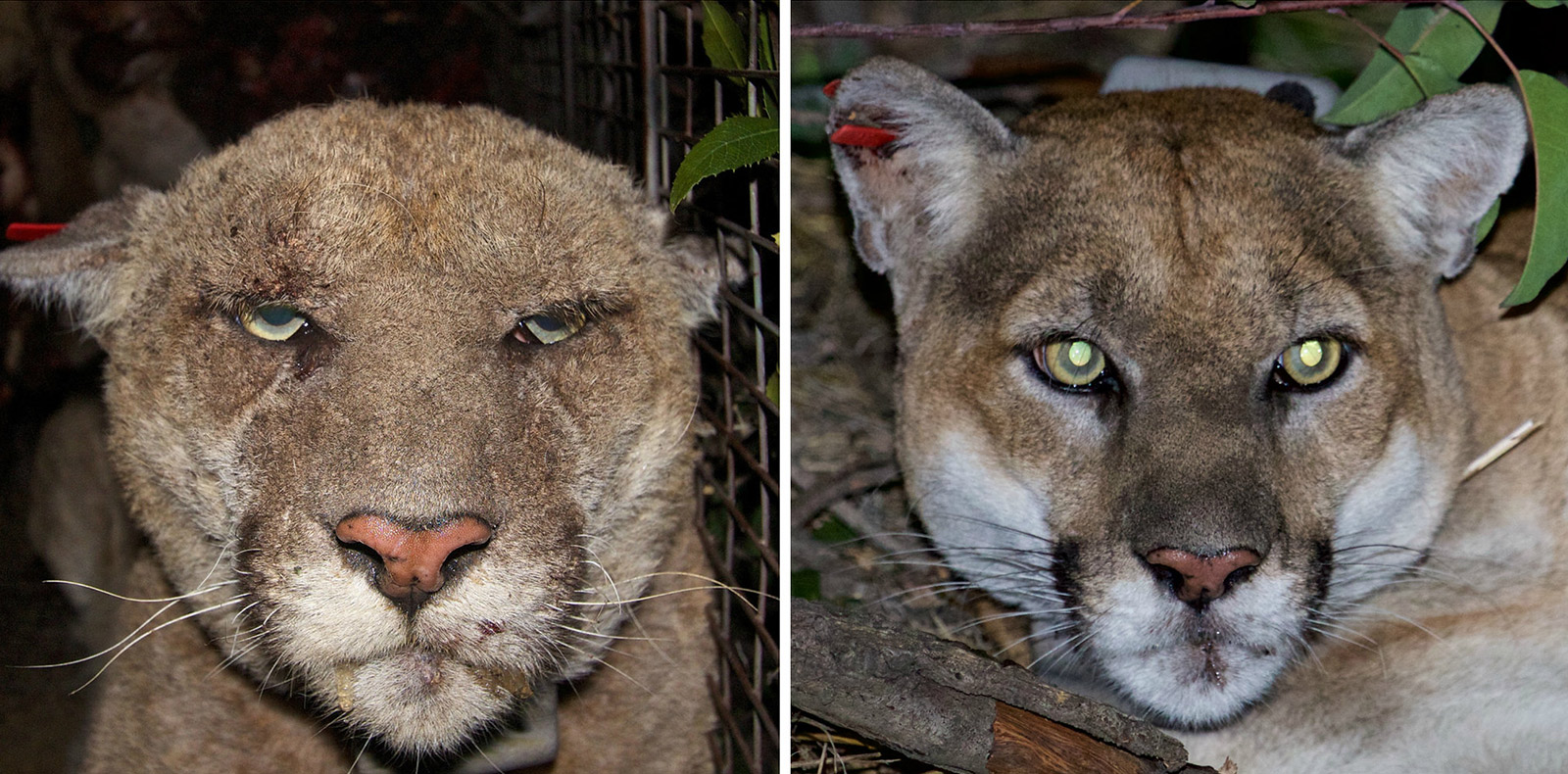 Sadly, before biologists could capture P-22 for a full health assessment, the big cat ran across a busy Los Feliz street at nighttime and was struck by a car. He was able to scamper off, but was later found and corralled in a backyard by NPS Rangers. After a careful examination, P-22 was discovered to have suffered multiple injuries related to the collision, plus serious health issues typically found in older cats. Realizing he would no longer live a pain-free life due to these injuries, P-22 was compassionately euthanized on December 17, 2022.