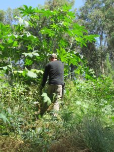 FoGP has been in a constant battle against castor bean, tree tobacco, black mustard, fountain grass and Russian thistle, to name a few. Invasives pose an existential threat to the native flora diversity of Griffith Park, crowding them out of space and zapping the soil of nutrients. Soil disturbance opens a niche for non-natives along every trail, and required brush clearance produces a backlash of more non-natives.
